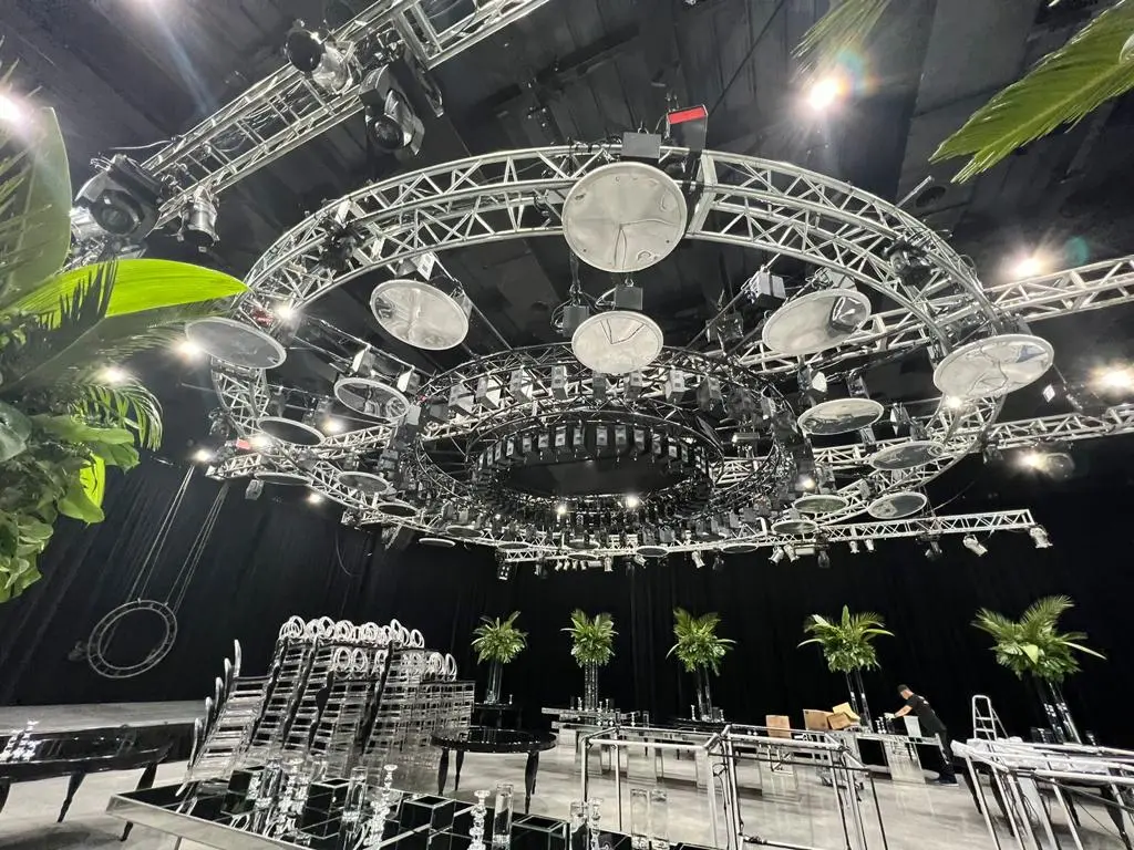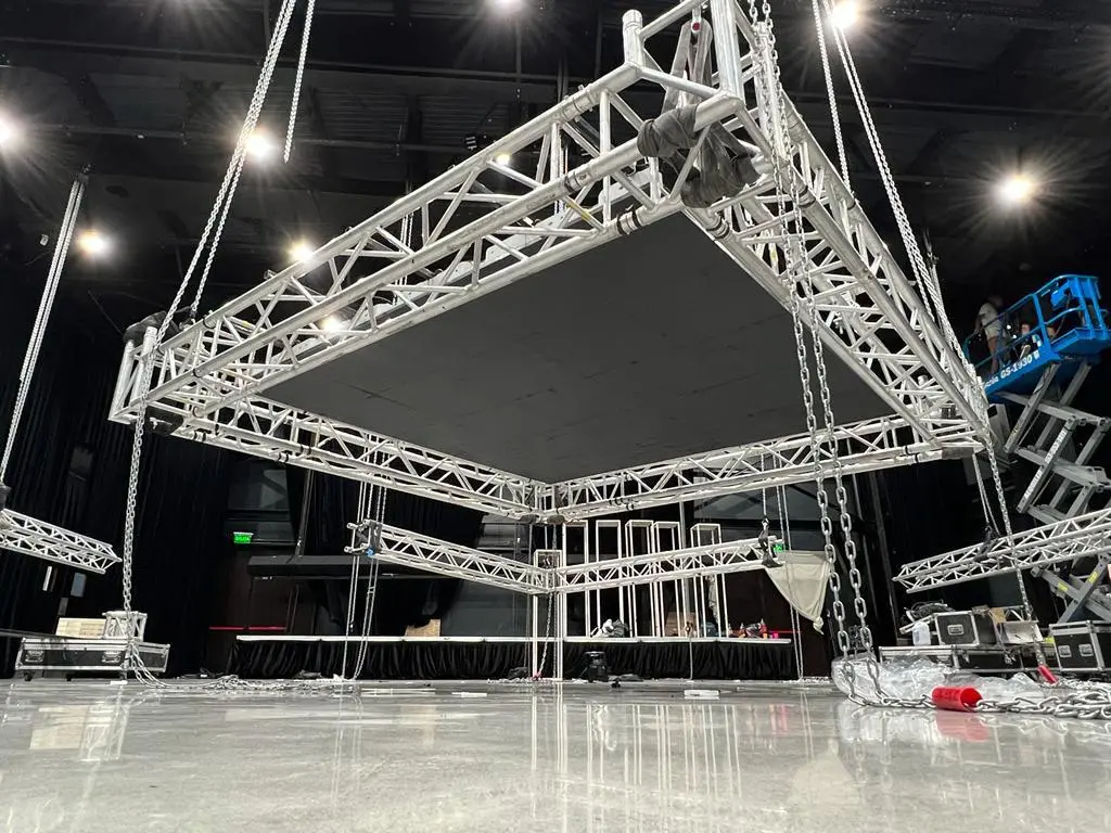 En Iovatech, nuestra sección de rigging incluye tramos estructurales en varias configuraciones, accesorios para unir y dar forma, y una gama de motores manuales y eléctricos. Estos motores y aparejos eléctricos no solo aseguran instalaciones seguras, sino que también permiten darle movimiento y dinamismo a la iluminación y las pantallas durante los eventos.